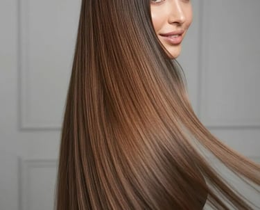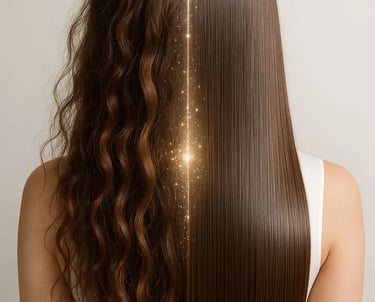 A modern hair straightening solution that makes hair smoother and healthier without harsh chemicals. It strengthens hair from within.